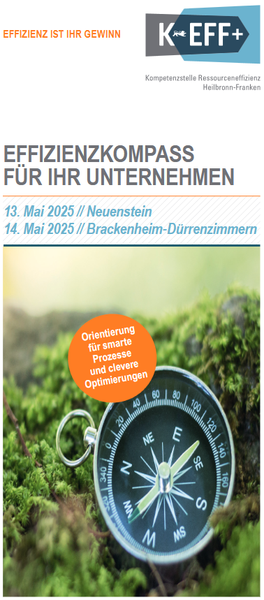 Beim EffizienzKompass können UnternehmerInnen und Interessierte gemeinsam in Richtung Ressourceneffizienz navigieren. Unter den richtungsweisenden Themen wird es viele spannende Ansätze geben, um Herausforderungen zu meistern und trotz wenig Zeit, ein gemeinsames großes Ziel anzuvisieren: Die Stärkung und Zukunftsfähigkeit der Wirtschaftsregion Heilbronn-Franken.