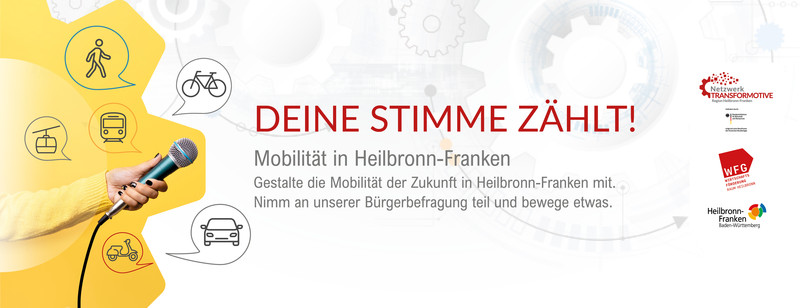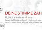 Wie bewegen sich die Bürgerinnen und Bürger in der Region Heilbronn-Franken? Vom 23. Februar bis 26. April 2024 führt die Wirtschaftsregion Heilbronn-Franken GmbH eine Online-Bürgerbefragung zum Mobilitätsverhalten in der Region durch. Sie kann unter dem Link https://survey.lamapoll.de/HeilbronnFrankenBuergerbefragung ausgefüllt werden. Zu gewinnen gibt es einen von drei attraktiven Preisen.