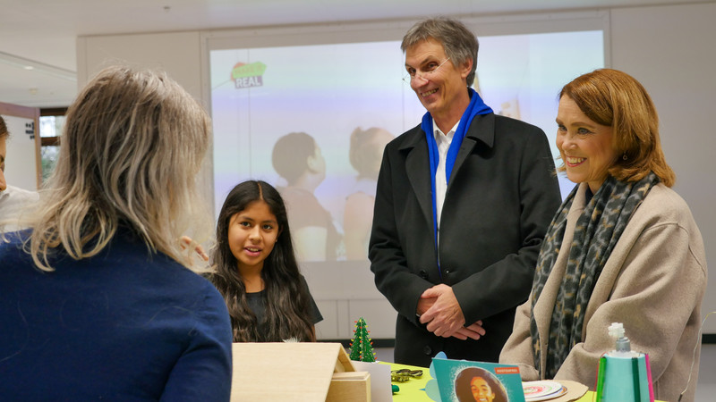 Gemeinsam mit der Hochschulleitung geht es für die Ministerin zum Klimawäldchen am Campus. Durch die Unterstützung von Baumpat*innen soll die Grünfläche Stück für Stück um weitere Bäume wachsen und die bereits bestehenden Aktivitäten und Ziele einer nachhaltigen Entwicklung der HHN unterstützen. Für die gesellschaftsrelevante Forschung und Lehre am Sontheimer Campus interessiert sich Ministerin Olschowski ganz besonders. Mit einem autonom fahrenden Shuttle geht es daher weiter zu Professorin Nicola Marsden. Sie ist Expertin der Sozioinformatik und gibt der Ministerin Einblicke in ihr Herzensprojekt „MAKEitREAL“ – ein mobiles Bildungsangebot für MINT-Themen. Die Besonderheit: Es richtet sich explizit an junge Mädchen mit Migrationshintergrund.