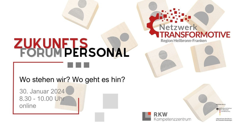 Das Netzwerk TRANSFORMOTIVE Heilbronn-Franken lädt Personalverantwortliche am 30.01.2024 zu einem online Zukunftsforum Personal ein. Dabei werden die Fragen „Wo stehen wir? Wo geht es hin?“ in Bezug auf den Fachkräftemangel beantwortet. Neben den Zahlen, Daten, Fakten wird es eine Prognose für 2035 sowie Zukunftsszenarien geben. Vom RKW Kompetenzzentrum ist Sascha Hertling zu Gast und hält einen Impulsvortrag zu den Kompetenzen der Zukunft.